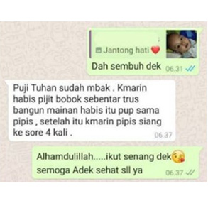 Sudah sembuh dek?... Puji Tuhan sudah mbak. Kemaren habis pijit bobo sebentar terus bangun mainan habis itu pup sama pipis, setelah itu kemaren pipis siang ke sore 4 kali.